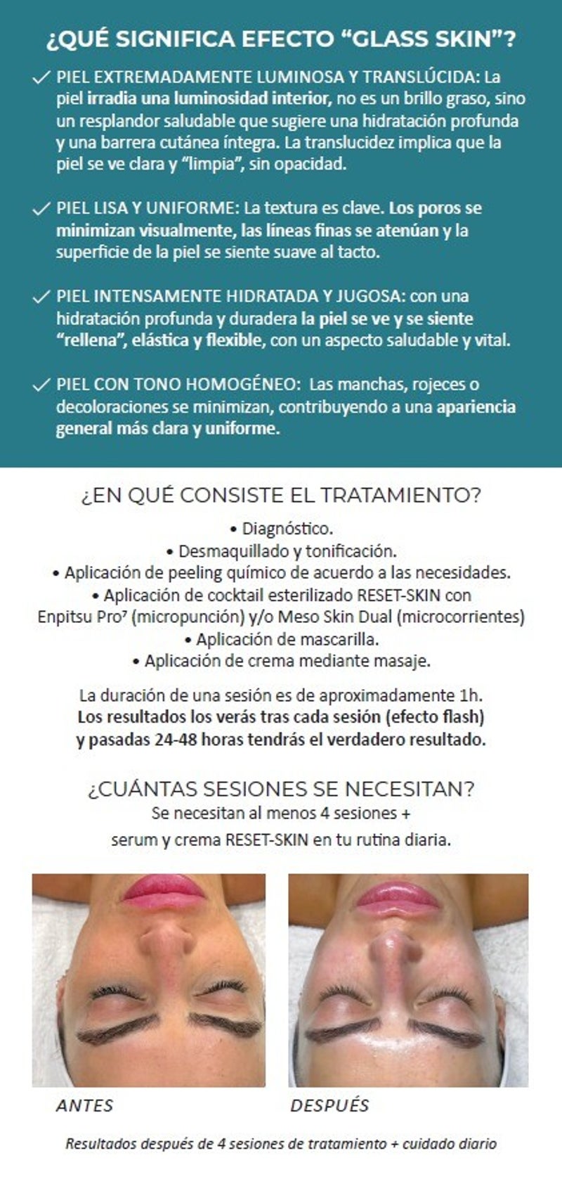 | RESET SKIN con exosomas de resveratrol | Regeneración profunda + reeducación celular | Firmeza real, reducción de arrugas y efecto “Glass Skin” duradero |